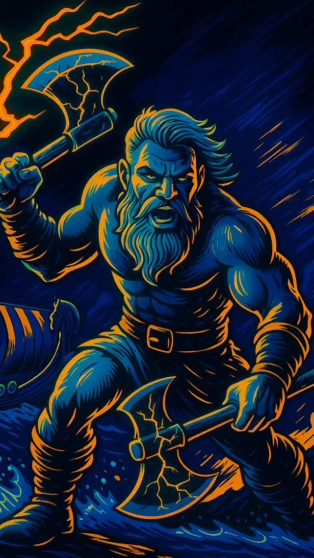 A glowing Viking-themed axe arena
